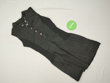 Czarna sukienka mini bez rękawów. Dekolt w kształcie litery V, zapinany na guziki, ozdobiony stójką. Na plecach wstawka z koronki, a po bokach elastyczne panele. Model ten sprawdzi się zarówno na co dzień, jak i na specjalne okazje, zapewniając wygodę i styl.