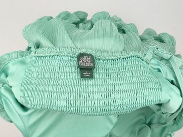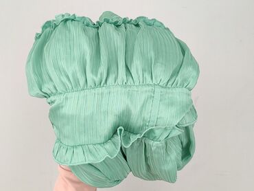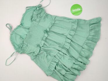 Lekki top damski w kolorze miętowym, wykonany z przezroczystego materiału z delikatnymi ramiączkami. Charakteryzuje się elastycznym, marszczonym pasem w talii, który dodaje mu struktury i dopasowan...