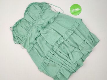 Bez rękawówSukienka mini w kolorze mięty, z wieloma falbankami. Model ma fason bez ramiączek, z marszczonym dekoltem i elastycznym, marszczonym pasem pod biustem, co nadaje jej zwiewny i dziewczęcy wygląd. Dół sukienki składa się z trzech warstw falbanek, zapewniających lekkość i swobodę ruchu. Idealna na letnie dni i wieczorne wyjścia.