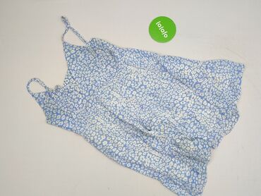 Sukienka na ramiączkach, granatowa, w kwiatowy nadruk. - Fason: lekko rozszerzany, z falbaną na wysokości biustu - Ramiączka: cienkie, regulowane - Dekolt: w kształcie litery V z przodu i z tyłu -...