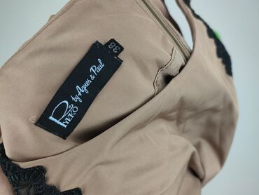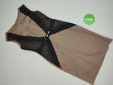 Do pracyTa sukienka mini w kolorze beżowym, marki Pinko by Agnes & Paul, łączy elegancję z odważnym designem. Beżowa tkanina jest uzupełniona czarnymi wstawkami z koronki, tworzącymi kształt litery V z przodu, co optycznie wysmukla sylwetkę. Model bez rękawów, zapinany na zamek z tyłu, jest idealnym wyborem na specjalne okazje, takie jak wieczorne wyjścia czy eleganckie przyjęcia. Regulowany pasek z klamrami pośrodku podkreśla talię, dodając sukience charakteru. Zapewnia wygodę noszenia, jednocześnie gwarantując modny i wyrafinowany wygląd. To idealna opcja dla kobiet, które cenią sobie styl i unikalność. Rozmiar podany na metce nie odpowiada rzeczywistości, rzeczywisty rozmiar S.