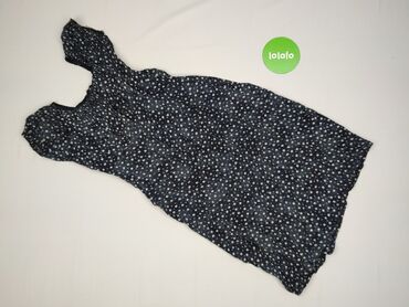 Sukienka na ramiączkach, granatowa, w kwiatowy nadruk. - Fason: lekko rozszerzany, z falbaną na wysokości biustu - Ramiączka: cienkie, regulowane - Dekolt: w kształcie litery V z przodu i z tyłu -...