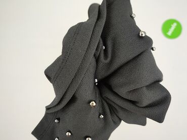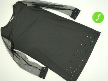 Czarna, dopasowana sukienka mini z długim rękawem i półtransparentnymi wstawkami z siateczki na rękawach oraz przy dekolcie. Przód zdobią aplikacje z drobnych, srebrnych dżetów podkreślające linię ...Stan: