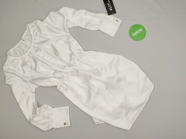 Sukienka koronkowa biała – rozmiar S - Fason: dopasowany, długość mini/przed kolano - Długi rękaw - Wysoka stójka - Bogata, ażurowa koronka z geometrycznymi i kwiatowymi motywami; prześwity w górn...