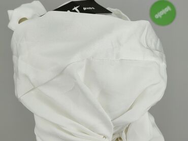 Biała prążkowana sukienka z długim rękawem - Fason: kopertowy dekolt w kształcie litery V, dopasowana góra, dół z lekkim zakładaniem (asymetryczny przód) - Długość: mini do połowy uda - Rękaw: dłu...