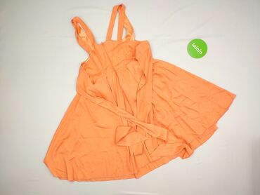Sukienka damska Sinsay - Rozmiar: XS (z metki) - Kolor: brzoskwiniowy/pastelowy pomarańcz - Fason: rozkloszowana, z odcięciem w talii i doszywanymi, marszczonymi falbanami na dole - Dekolt: kwadra...