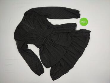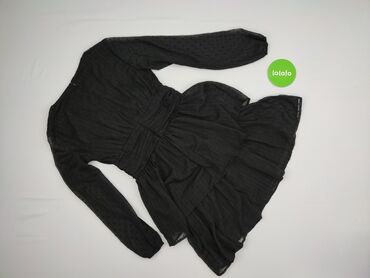 Czarna sukienka Sinsay, rozmiar S. - Fason: mini, kopertowy dekolt V, odcięcie w talii - Rękawy: długie, lekko bufiaste z gumką przy mankiecie - Materiał: 100% poliester (zarówno tkanina, jak i po...