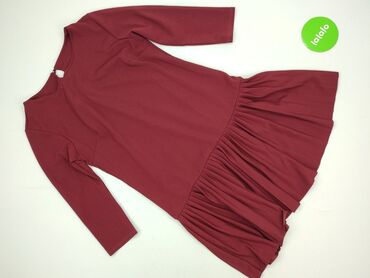 Sukienka dzianinowa damska - Kolor: głęboki burgund/wiśnia - Krój: dopasowana góra, odcięcie w talii z marszczeniami; delikatnie rozkloszowany dół - Dekolt: szeroki, zaokrąglony - Rękawy: długie -...