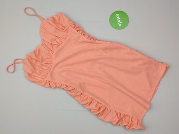 Damska sukienka mini Lipsy London bez ramiączek w kolorze łososiowym. Sukienka ma dopasowany krój z marszczeniami po bokach, które podkreślają sylwetkę. Dekolt w kształcie serca zdobią błyszczące k...