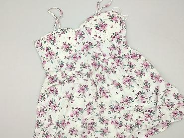 Sukienka damska H&M Divided - Model: na ramiączkach, dopasowana mini - Wzór: drobne niebieskie kwiaty na białym tle - Dekolt: serce z delikatną falbanką i małą ozdobną kokardką - Materiał (metka):...