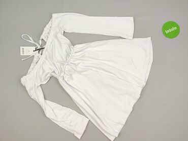 Biała sukienka bez ramiączek, rozmiar S. - Fason: dopasowany, bandażowy/top gorsetowy z odcięciem w talii; dół z lekką falbanką. - Dekolt: serce (usztywniane miseczki). - Zapięcie: z tyłu kryty za...