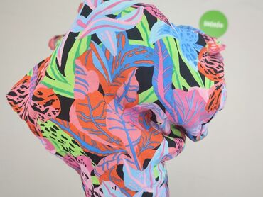 - Wzór: intensywny, tropikalny print w liście i kwiaty w kolorach różu, niebieskiego, zieleni, pomarańczu i czerni.
