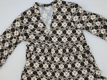 Sukienka Sinsay, rozmiar M - Fason: mini, lekko dopasowany w talii - Rękawy: krótkie bufiaste (objętościowe), z marszczeniami na ramionach - Dekolt: okrągły - Wzór: czarno-biały, drobny geometrycz...