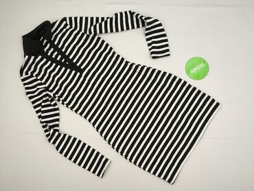 Sukienka damska H&M – czarno-biały geometryczny wzór - Fason: mini/przed kolano, lekko rozkloszowany dół - Rękaw: długi, zakończony delikatną gumką - Dekolt: okrągły - Talia: podkreślona marszczen...