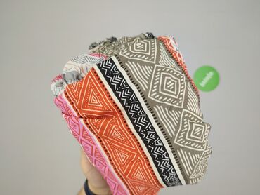 - Wzór: etniczne/geometryczne pasy i romby; kolory: pomarańcz, róż, oliwka, czerń, biel.