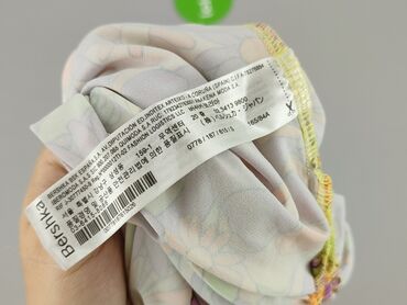 Sukienka letnia Bershka BSK - Fason: bez ramiączek, górna część na elastycznej gumce z krótką listwą z guzikami - Wzór: połączenie zielono‑miętowych pasków u góry i tropikalnego printu z liśćmi or...