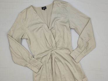 Lekka sukienka mini z długim rękawem w odcieniu bladego różu. Charakteryzuje się kopertowym dekoltem i plisowaną spódnicą, która dodaje lekkości. Rękawy zakończone są elastycznymi mankietami. W tal...
