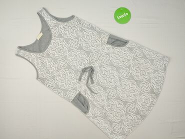 Szara sukienka bez rękawów - Krój: prosty, dzianinowa góra z okrągłym dekoltem, odcięcie w pasie - Dół: z tkaniny o lnianej fakturze, lekko rozszerzany - Szczegóły: wszyty tunel w pasie z troczkie...