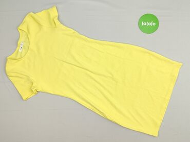 Cienki, żółty T-shirt damski marki Sinsay w rozmiarze M. Sukienka ma krótkie rękawy i okrągły dekolt, zapewniając swobodny krój. Idealna na co dzień, na ciepłe dni. Jej prosty fason sprawia, że łatwo dopasować ją do różnych stylizacji, zarówno na luźne wyjścia, jak i bardziej zrelaksowane okazje. Lekki materiał zapewnia komfort noszenia.
