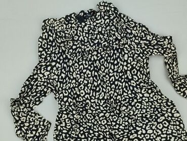 Sukienka mini damska marki Zara, rozmiar S, w odcieniach czerni, bieli i zieleni. Charakteryzuje się wzorem w cętki i długimi, bufiastymi rękawami, co nadaje jej swobodny, a zarazem stylowy wygląd....