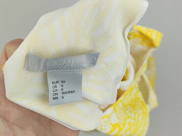 Sukienka damska H&M - Rozmiar: XS (EU XS, US XS, 160/80A – zgodnie z metką) - Fason: luźny, prosty krój do kolan lub tuż za kolano - Dekolt: w serek z krótką listwą - Rękawy: krótkie - Wzór: żółto...