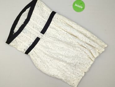 Sukienka damska, rozmiar M. Dwuczęściowy efekt: - góra: kremowa/śnieżnobiała koronka o kwiatowym wzorze, krótki rękaw, zaokrąglony dekolt, delikatne lamowanie przy krawędziach - dół: rozkloszowana ...
