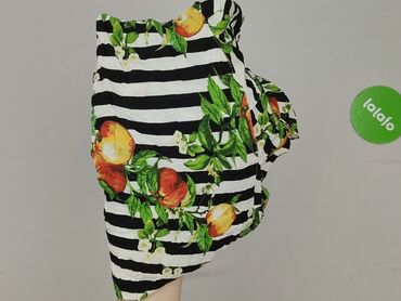 - Wzór: czarno-białe pionowe pasy z nadrukiem cytrusów i zielonych liści