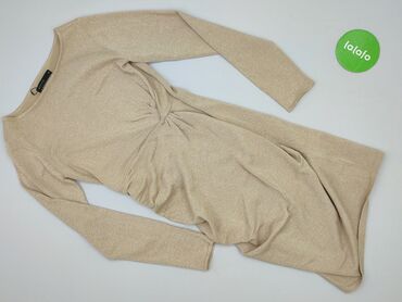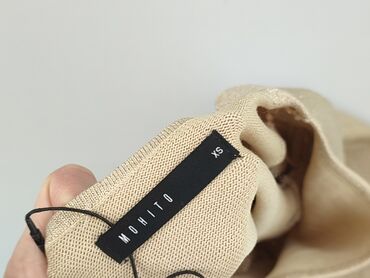Dzianinowa sukienka prążkowana Mohito BASIC - Marka: Mohito (linia BASIC) - Rozmiar z metki: XS - Fason: dopasowana, midi - Rękaw: długi - Dekolt: półgolf z lekką falbanką - Kolor: jasny beż/nude ...