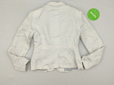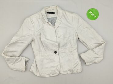 Marynarka damska Reserved, rozmiar XS. - Krój: dwurzędowy żakiet z głębokimi klapami i zaznaczoną talią - Wzór: biało‑czarne, wąskie paski (pionowe na sylwetce, na klapach i rękawach układ zgodny ...