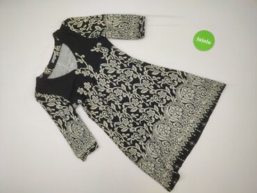 Sukienka MONTEGO, rozmiar 38 - Fason: dopasowany, długość przed kolano - Rękaw: 3/4 w kolorze czarnym - Dekolt: łódka - Wzór: czarno‑kremowy, ornamentalny (roślinno‑paisley) na całym przodzie i ty...