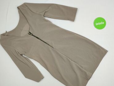 Beżowa sukienka ołówkowa z długim rękawem - Fason: dopasowany, ołówkowy, długość za kolano - Rękaw: długi (ok. 7/8 – do nadgarstków) - Dekolt: łódka - Materiał: średniej grubości, elastyczna dzian...Stan: