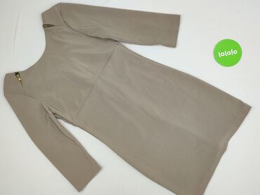 Sukienka damska ołówkowa, elegancka - Kolor: jasnoszary (taupe) - Fason: dopasowany, ołówkowy, długość do kolan - Rękaw: 3/4 - Dekolt: łagodnie zaokrąglony - Zapięcie: z tyłu długi suwak w złotym ...