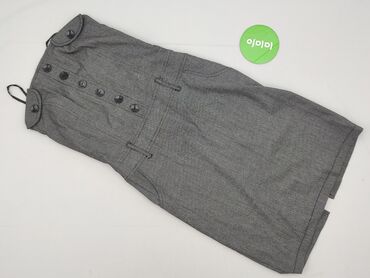 Dzianinowa sukienka prążkowana, szara - Fason: dopasowany, długość mini/za kolano (zależnie od wzrostu) - Rękaw: długi - Dekolt: w serek z ozdobnymi, elastycznymi paskami (strappy) z przodu i na p...
