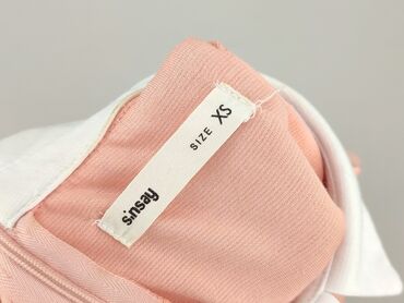 Sukienka Sinsay XS - Fason: prosta, lekko rozszerzana ku dołowi - Długość: mini/tuż przed kolano (w zależności od wzrostu) - Rękaw: krótki - Kolor: brzoskwiniowy (pastelowy róż) z kontrastową, bia...