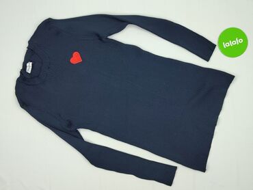 Granatowa sukienka dzianinowa z długim rękawem - Fason: prosta, lekko dopasowana, długość mini/przed kolano - Dekolt: głęboki w kształcie litery V - Wykończenia: sportowe ściągacze z kontrastowymi...