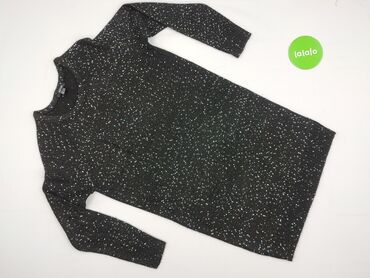 Sukienka damska Esmara - Kolor: czarny z połyskującą, drobną nitką (efekt brokatowy/metaliczny) - Fason: dopasowany, z marszczeniem i zakładką z przodu, asymetryczny dół - Rękaw: długi - Dekolt: o...
