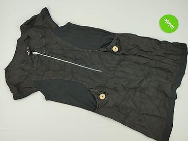 - Detale: kontrastowe wstawki po bokach z prążkowanej dzianiny; dwie ozdobne duże, jasne guziki z przodu; lekko rozszerzany dół