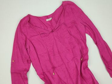 Długa bluzka/tunika damska w kolorze fuksji (intensywny róż). - Luźny, wydłużony krój – świetna jako tunika do legginsów lub jako koszula oversize. - Dekolt w serek z krótką listwą. - Jedna naszywa...Stan: