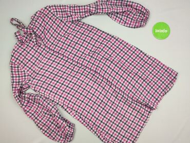 Sukienka damska House, rozmiar S - Wzór: krata (odcienie czerni, szarości i różu) - Fason: lekko rozkloszowany dół z marszczeniami/warstwami, długi rękaw - Dekolt: w serek, częściowo zapinany na g...