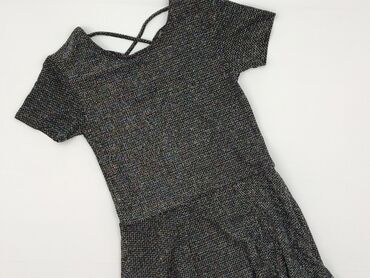 Czarna sukienka z krótkim rękawem - Krój: luźny, rozszerzany ku dołowi, z miękkimi marszczeniami; głęboki, zaokrąglony dekolt. - Długość: midi (na zdjęciach sięga za kolano). - Materiał: 50% wisko...