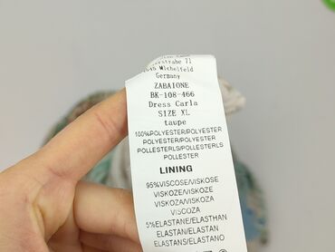Sukienka letnia ZABAiONE - Rozmiar: XL (na metce) - Fason: bez rękawów, z dekoltem w serek, długość maxi - Kolor/pattern: białe tło z dużym, rdzawo‑czerwonym tropikalnym wzorem liści i kwiatów - M...