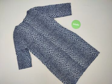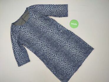 Sukienka Conform, rozmiar 44 - Fason: midi, prosty/tubowy, rękaw 3/4 - Dekolt: okrągły z krótką listwą i dwoma ozdobnymi guzikami - Wzór: abstrakcyjny, granatowo‑niebieskie akcenty na szaro‑czarny...