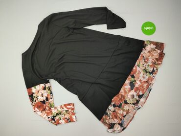 Sukienka damska XL – czarno‑szara, dzianinowa, w kwiatowy wzór - Krój: dopasowany, ołówkowy, długość za kolano - Rękaw: długi - Dekolt: okrągły, wykończony czarną lamówką - Materiał: elastyczna, m...