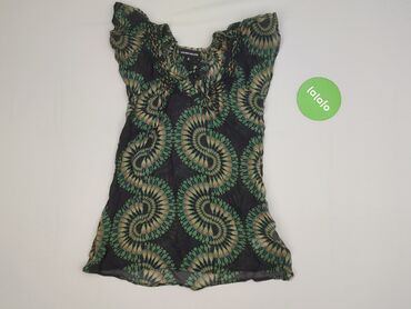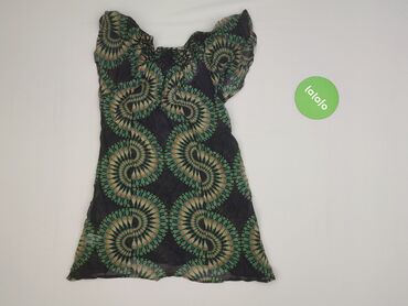 Bluzka/tunika damska Wallis, rozmiar S - Krój: luźna tunika z kopertowym dekoltem V, krótkie, szerokie rękawy, elastyczne marszczenie w pasie (guma) podkreślające talię. - Wzór/kolor: intensywne o...