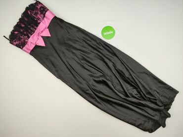 Elegancka sukienka wieczorowa Grantex Styl - Kolor: czarny, satynowy połysk - Krój: ołówkowy, długość za kolano (midi), bez ramiączek (gorsetowa góra) - Detal: ozdobna klamra z imitacją pereł/krys...Stan: