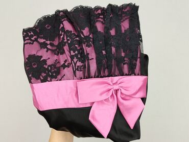 - Gorsetowa góra w kolorze fuksji pokryta czarną, kwiatową koronką