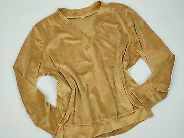 Damska bluza welurowa, karmelowy/beżowy kolor. - Krój luźny, z opadającą linią ramion - Dekolt w serek (V-neck) z podwójną listwą - Długie rękawy zakończone szerokimi ściągaczami - Ściągacz na ...Rozmiar: