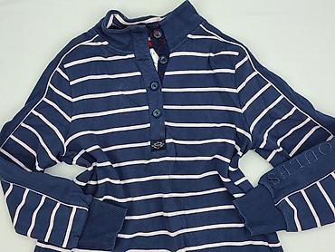 Damska bluza w paski, 100% bawełna - Fason: luźny, prosty krój z obniżoną linią ramion - Wzór: poziome granatowo-białe paski w stylu marynarskim - Rękawy: długie, zakończone delikatnym ściągaczem ...