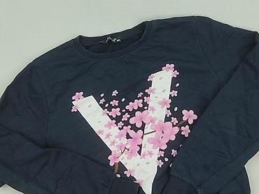 Bluza damska z długim rękawem, granatowo-szara, z kwiatowym wzorem. - Fason: klasyczna bluza z raglanowymi rękawami - Kolor: granatowe rękawy i tył; przód melanż szary z nadrukiem niebieskich róż ...Stan: