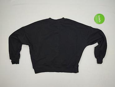 Bluza damska, czarna, z efektownym metalicznym nadrukiem w kolorze srebrnym na froncie (duży, prostokątny panel o nieregularnym wzorze). Klasyczny krój z okrągłym dekoltem, długim rękawem i ściągaczami przy mankietach oraz u dołu. Tył gładki.